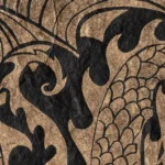 Que ce soit dans sa version dorée sur noir ou argent sur bordeaux, ce dragon a des allures d’armoiries médiévales – il aurait sa place sur le bouclier d’un chevalier ! Le sujet fait la part belle aux motifs, pour occuper au maximum l’espace défini.