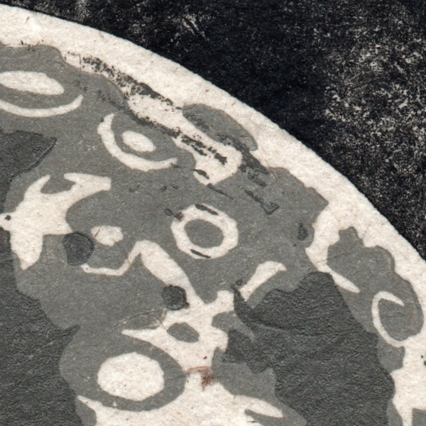 En fonction des impressions, le ciel est plus ou moins uniforme et fait des moirages qui évoquent un ciel étoilé.