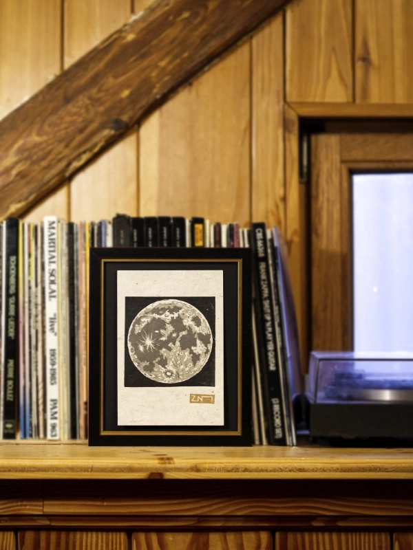 Moon river, Moonlight serenade, La Lune rousse ou La ballade à la Lune – La lune, avec ses aspects changeants, est une source d’inspiration en musique et ailleurs ! Elle méritait bien deux versions : une version en format allongé, plus “dark side of the moon” en dégradé de gris sur un ciel noir, et une version plus lumineuse et gaie, au Clair de la Lune !